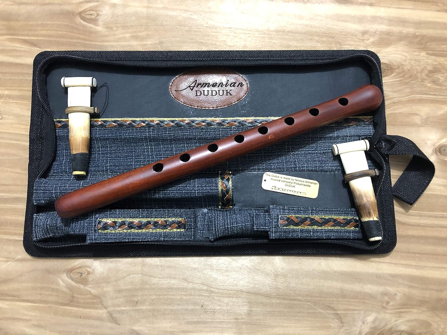 DUDUK Professional Armenian, Key A, Apricot Wood, Professional 2 Reeds, Jeans and Leather Case, Playing Instruction, For Duduk Players